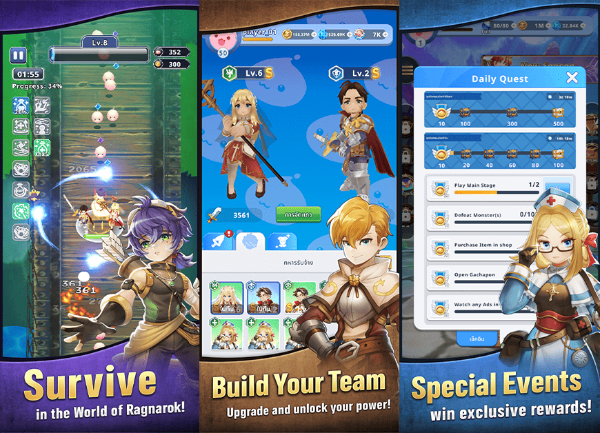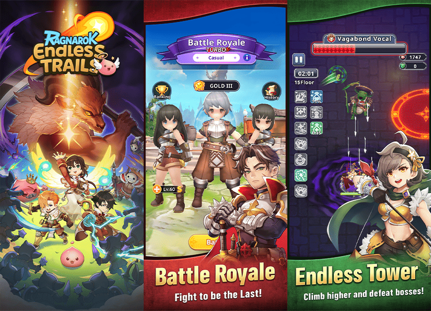 Ragnarok Endless Trail introduces a brand-new and unique gameplay experience, combining Roguelike Survival and Battle Royale for the first time in the Ragnarok universe. Players will explore dungeons that are newly randomized each run, encounter unpredictable situations, and test their survival skills in intense and thrilling battlefields.