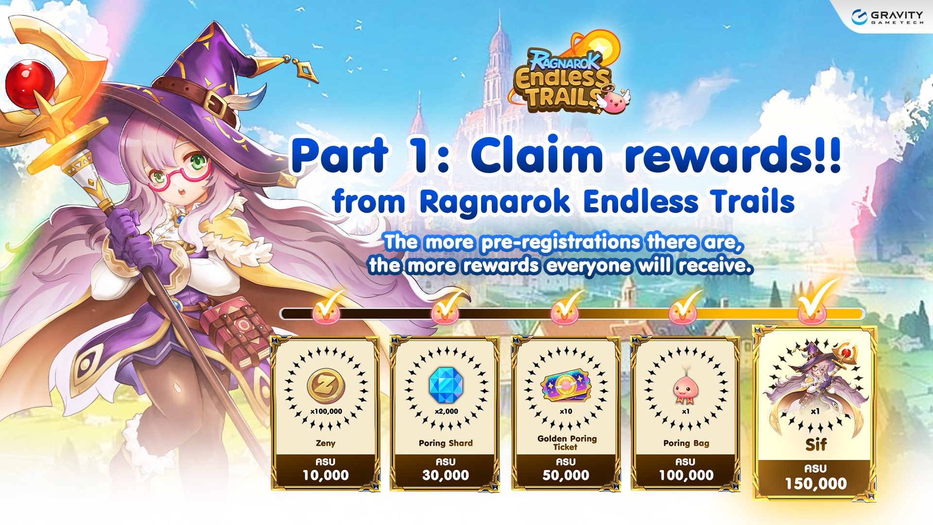 - 150,000 registrations: Sif (special assistant “Mercenary” – a little mage who helps players clear stages in-game)